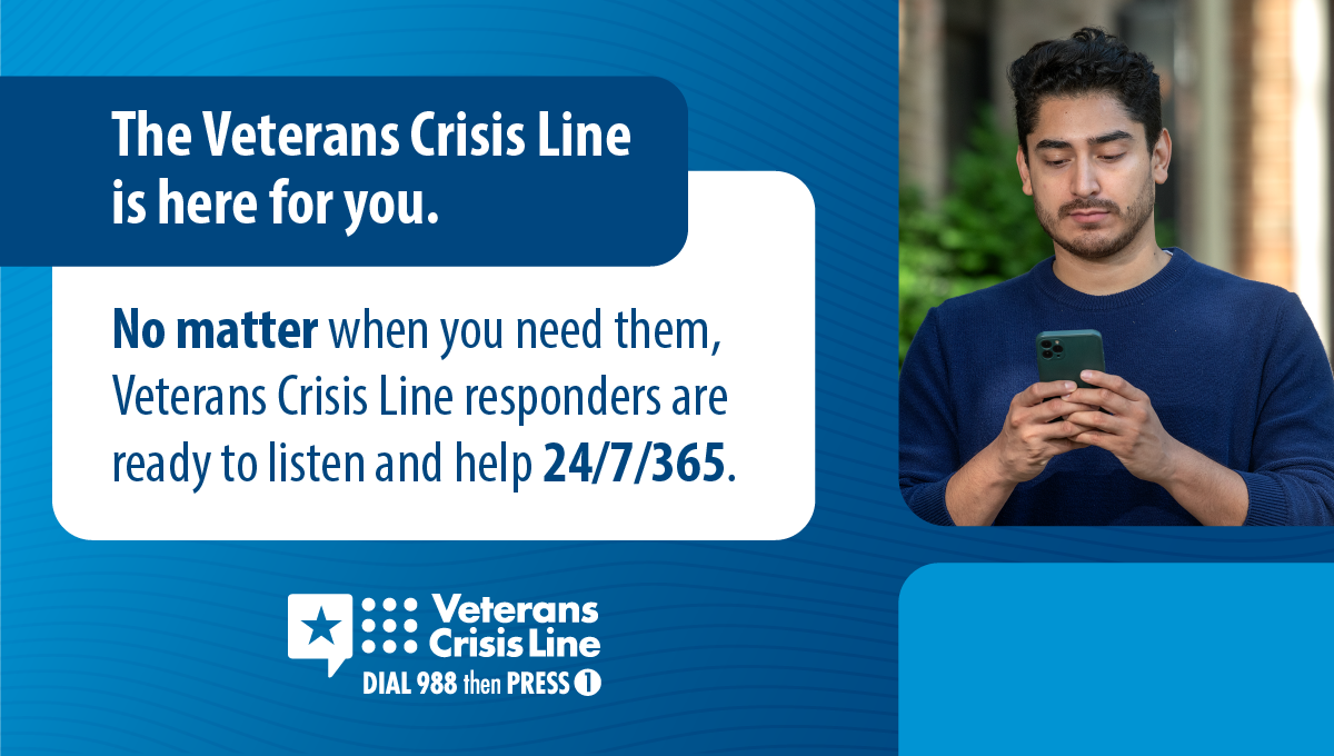 !La línea de crisis para Veteranos ofrece apoyo las 24 horas del día, los siete días de la semana. Si es un Veterano en crisis o está preocupado por un Veterano, llame, chatee o envíe un mensaje de texto ahora.